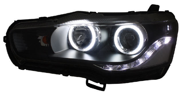 LANCER ФАРА Л+П (КОМПЛЕКТ) ТЮНИНГ ЛИНЗОВАН ДИОД (DEVIL EYES) С СВЕТЯЩ ОБОДК (EAGLE EYES) ВНУТРИ ЧЕРН